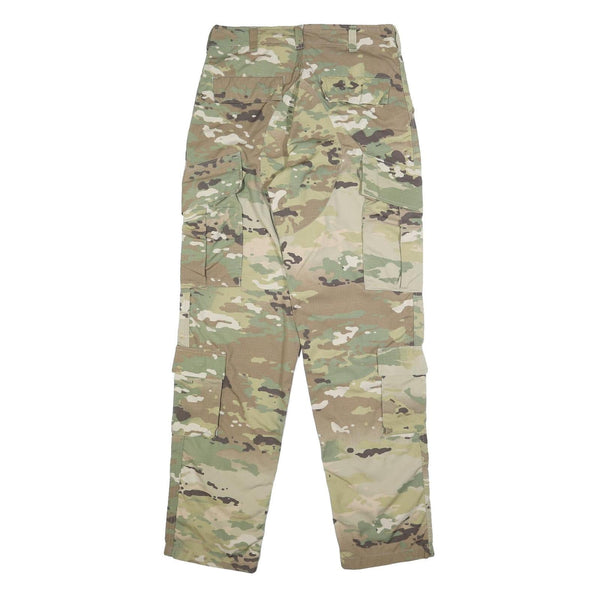 These men's trousers by Federal Prison Industries Inc feature a classic camouflage pattern combining shades of beige, green, brown, and cream. Designed with multiple cargo pockets, they provide ample storage space while maintaining a utilitarian aesthetic. The pants have a regular fit with a straight leg style, offering comfort and ease of movement.