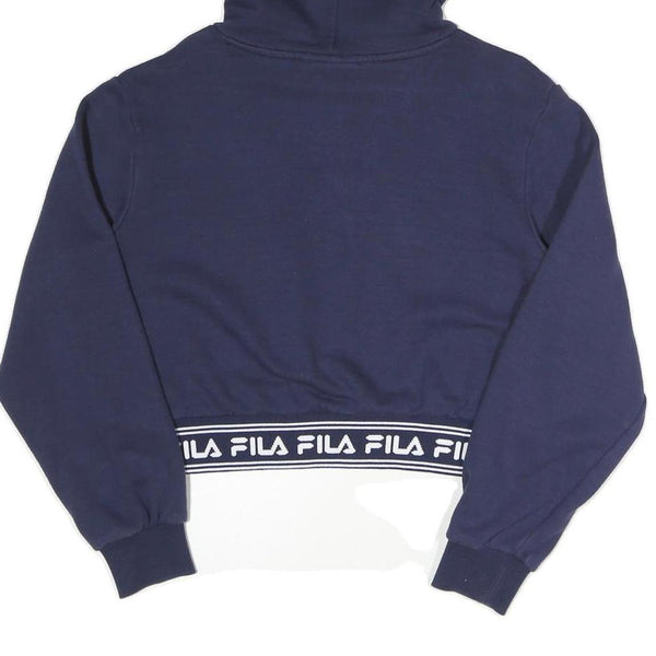 FILA Womens Navy Blue Hoodie UK 12 Cropped Logo Embroidered Sweatshirt
