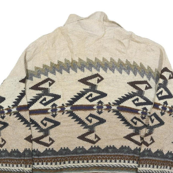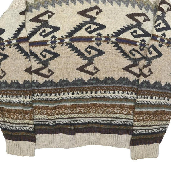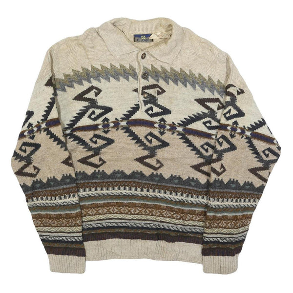 Fiume mens beige brown patterned wool blend polo jumper m pullover chunky knit