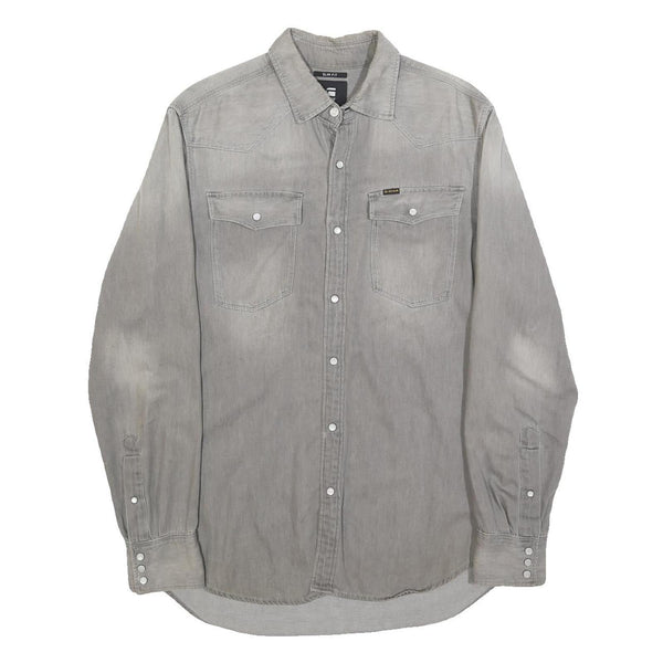 G-STAR Mens Grey Slim Fit Shirt L Cotton Long Sleeve Casual Denim Look