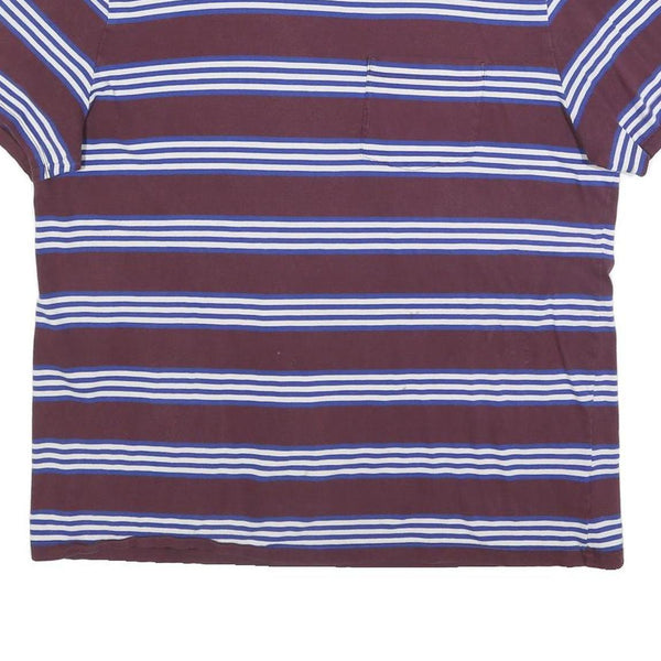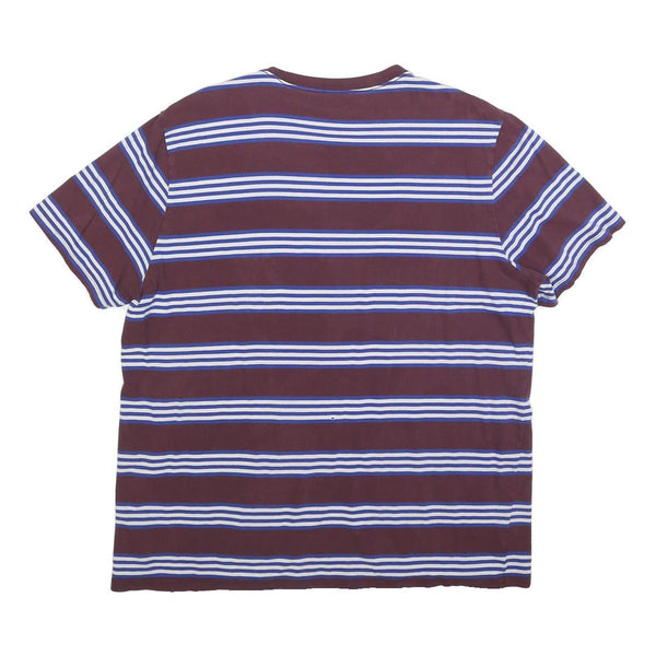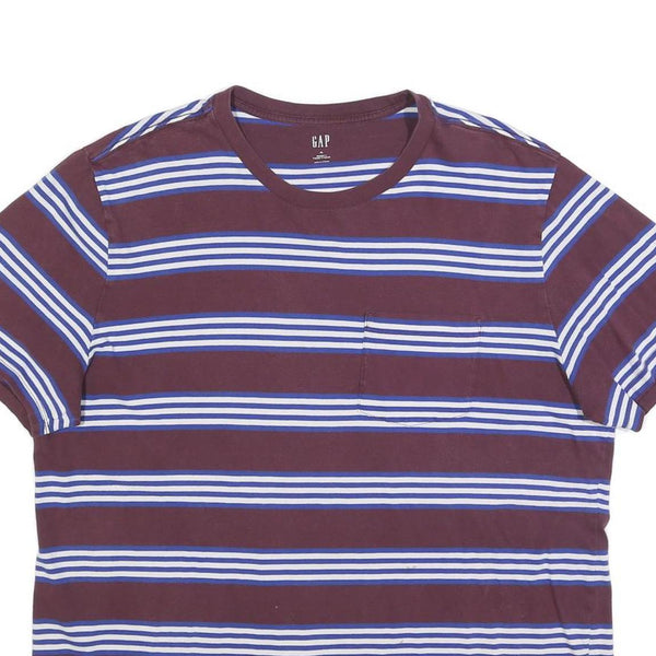 GAP Mens Maroon & Blue Striped T-Shirt XL Short Sleeve Crew Neck Casual Cotton