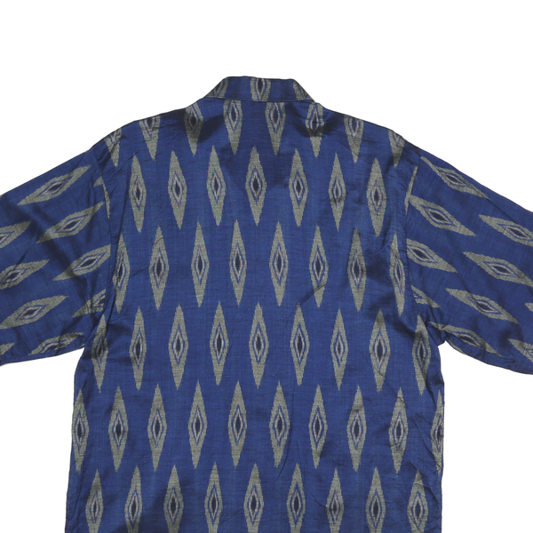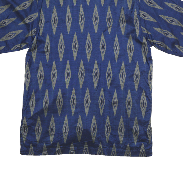 GEGO Mens Blue Pattern Shirt L Polycotton Short Sleeve Lightweight Casual