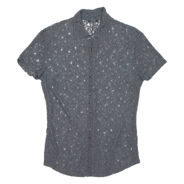 GUESS Sheer Womens Printed Blouse Grey Floral M