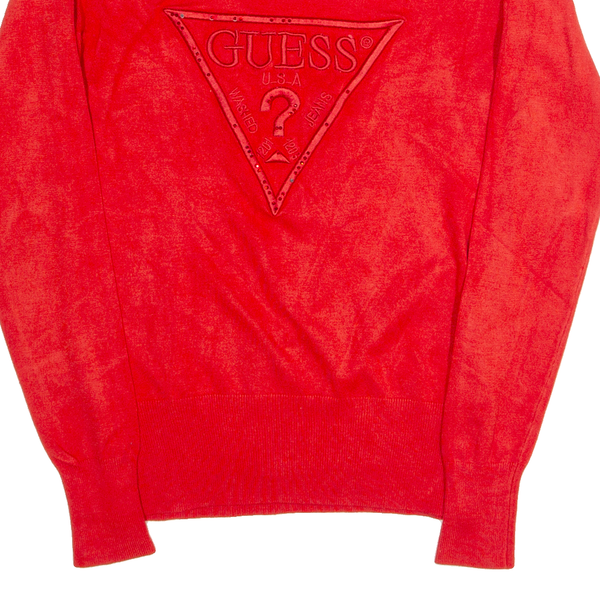 GUESS Womens Jumper Red V-Neck Tight Knit S