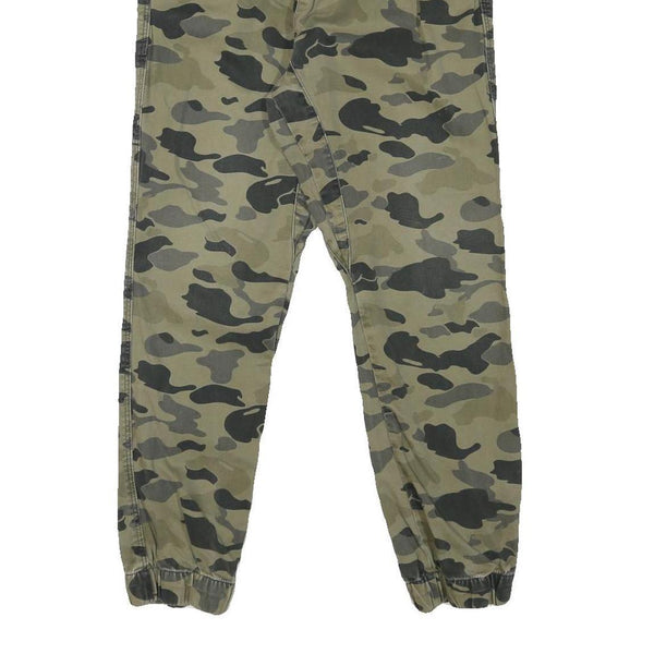 H&M Mens Cotton Blend Green Camouflage Relaxed Tapered Trousers W28 L28