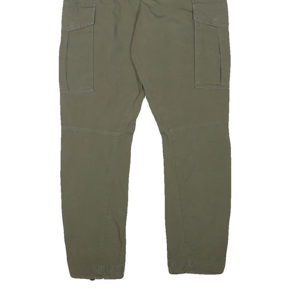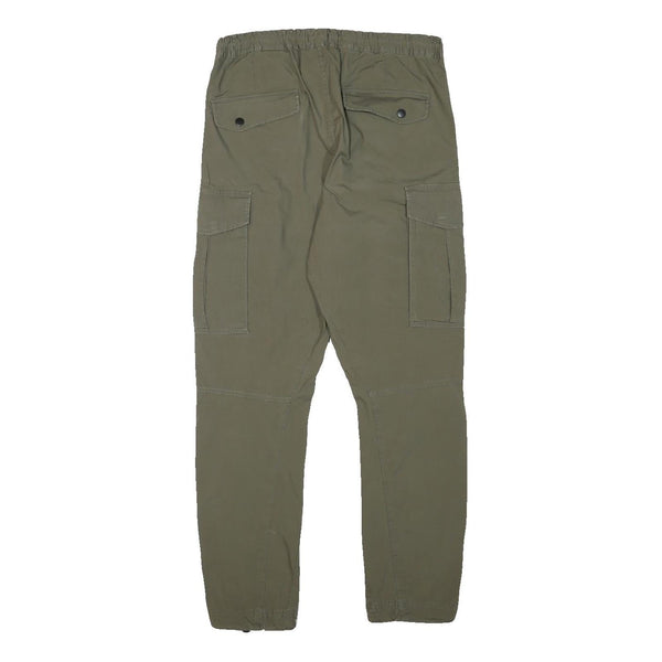 H&M Mens Cotton Blend Slim Cargo Trousers Green W29 L28 Drawstring Pockets