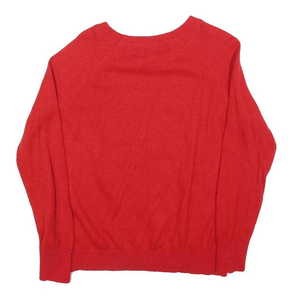 H&M Womens Red Gold Sequin Reindeer Patterned Wool Blend Jumper Crew Neck M