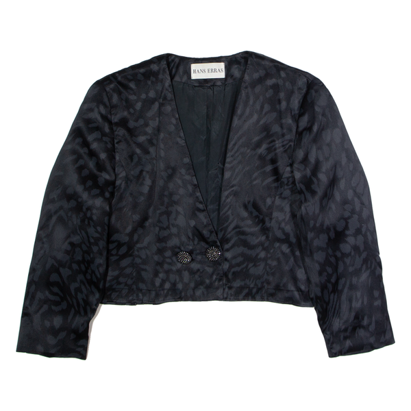 HANS ERRAS Womens Blazer Jacket Black Silk 90s UK 14