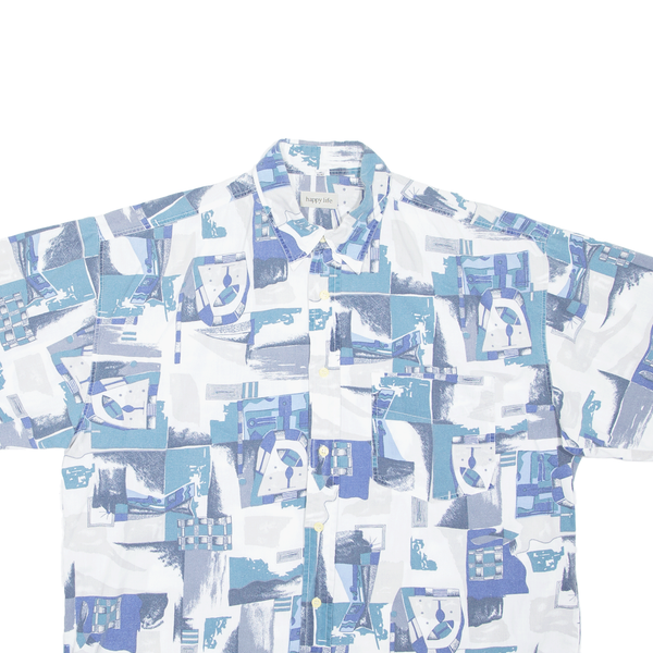 HAPPY LIFE Mens Shirt White Crazy Pattern L