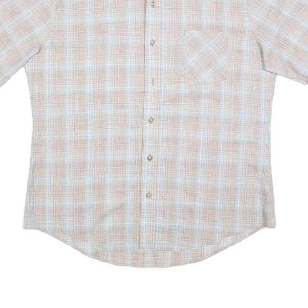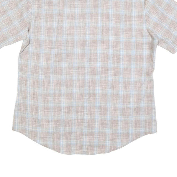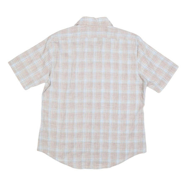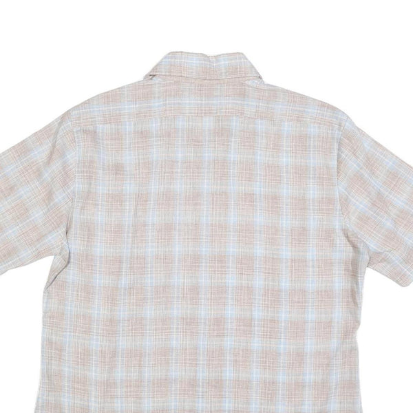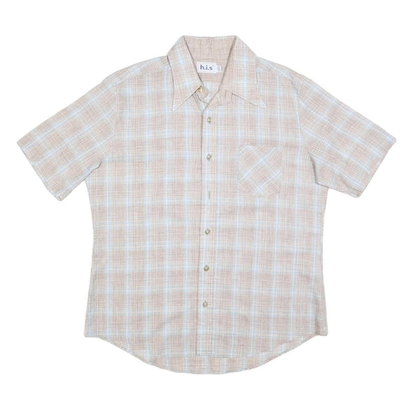 HIS Mens Beige & Blue Checked Shirt XL Cotton Blend Short Sleeve Casual Summer
