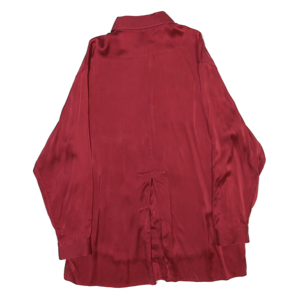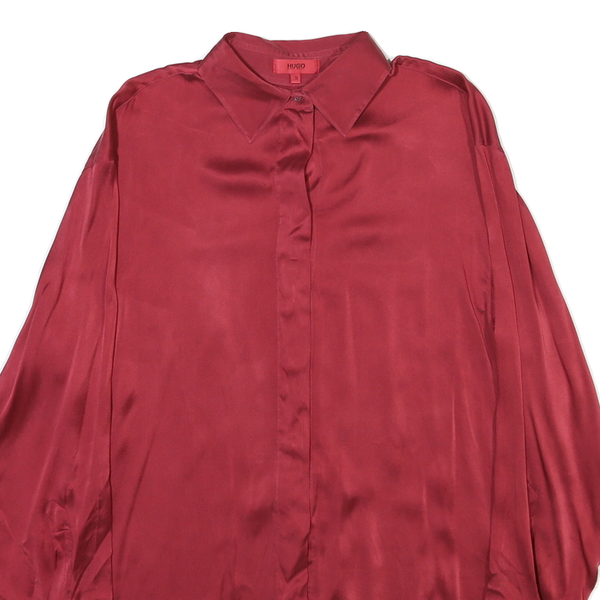 HUGO BOSS Mens Red Plain Shirt S Satin Polyester Blend Long Sleeve Formal