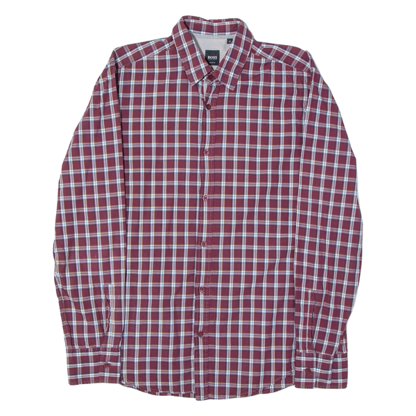 HUGO BOSS Mens Shirt Maroon Check Long Sleeve M