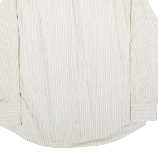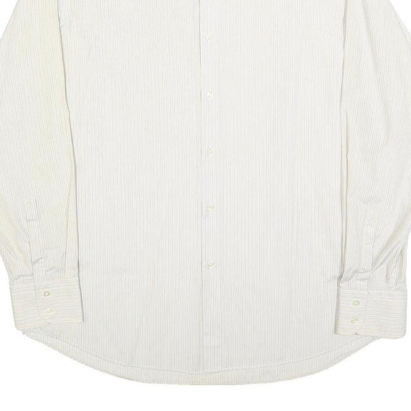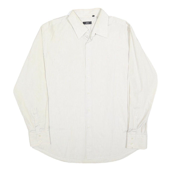 HUGO BOSS Mens White & Cream Striped Shirt L Smart Polyester Blend Formal