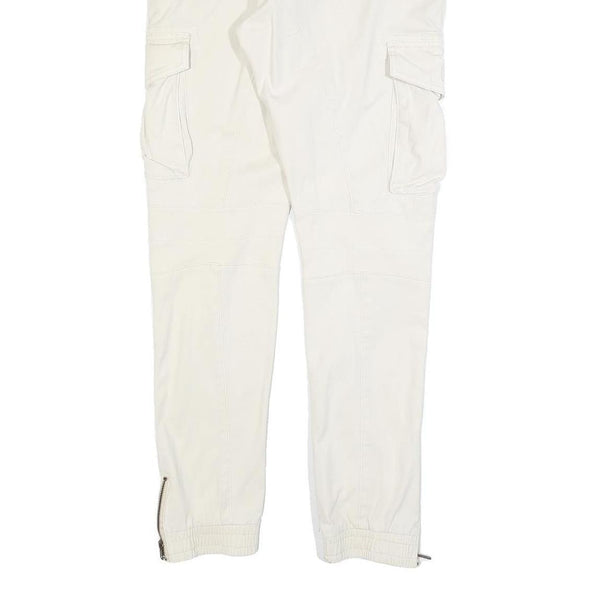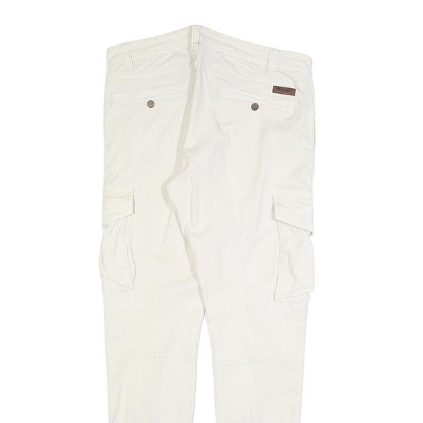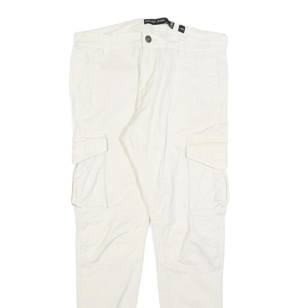 INDICODE Mens Slim White Cotton Blend Cargo Trousers W34 L32 Zip Closure