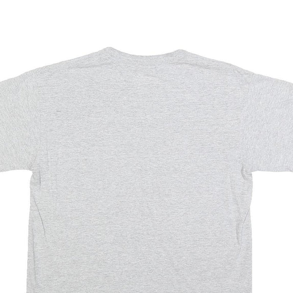 Made from a comfortable cotton blend fabric, this tee offers a soft and breathable feel ideal for casual wear. It has a classic crew neck and short sleeves with a regular fit that drapes nicely without being too tight or loose. The back of the T-shirt is plain grey with no graphics or branding.