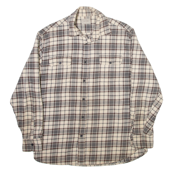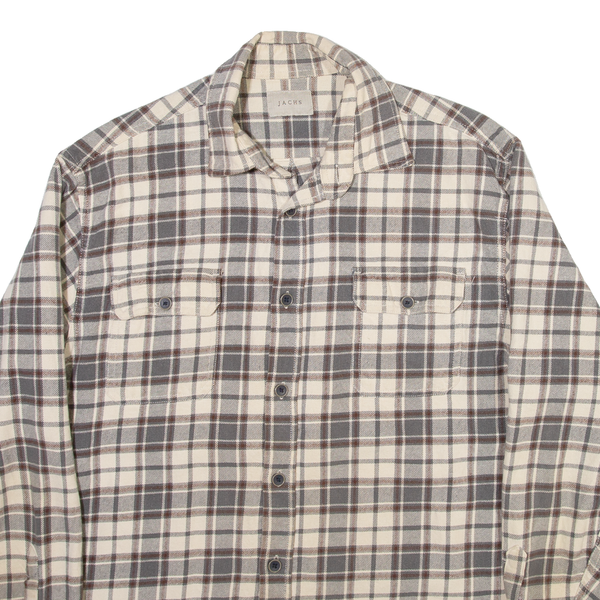 JACHS Mens Shirt Cream Check Long Sleeve L