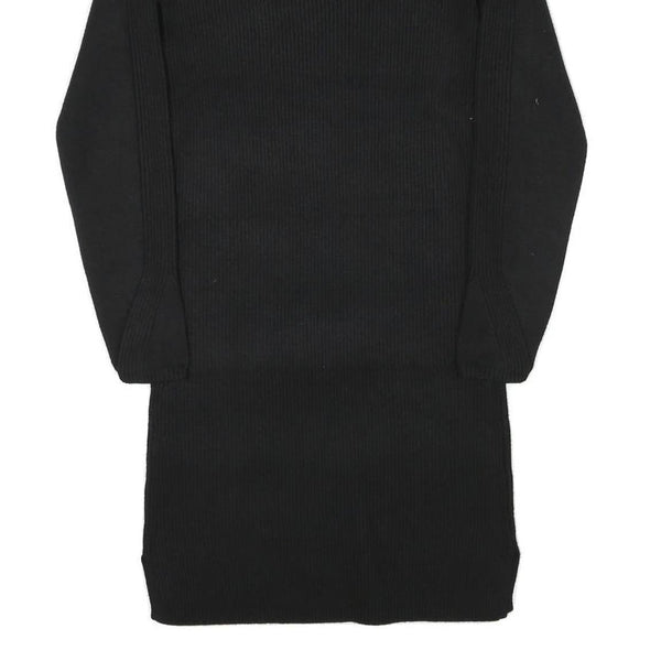 Jack wills womens black cotton blend jersey midi dress long sleeve uk 12 ribbed