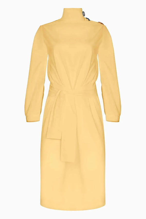 Create a long, lean silhouette with the Jara dress. Full length, pleated sleeves emerge from the straight, close-fitting midi dress, belted in the middle to emphasise the waist.