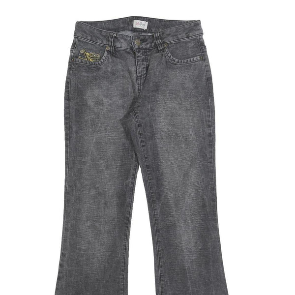 JOHN BANER Womens Grey Regular Flared Denim Light W28 L31 Embroidered Pockets