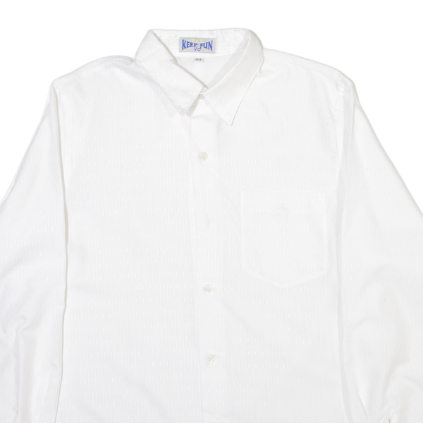 KEEP FUN Mens Plain Shirt White Long Sleeve S