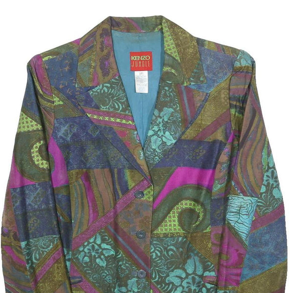 KENZO Womens Multicolour Silk Button Jacket M Woven Patchwork Designer
