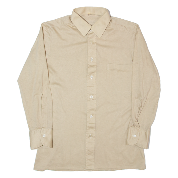L. HUBSCHER Mens Plain Shirt Beige Long Sleeve S
