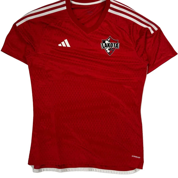 Red Adidas Jersey With Lakota Fc Logo And Number 22 On The Back.