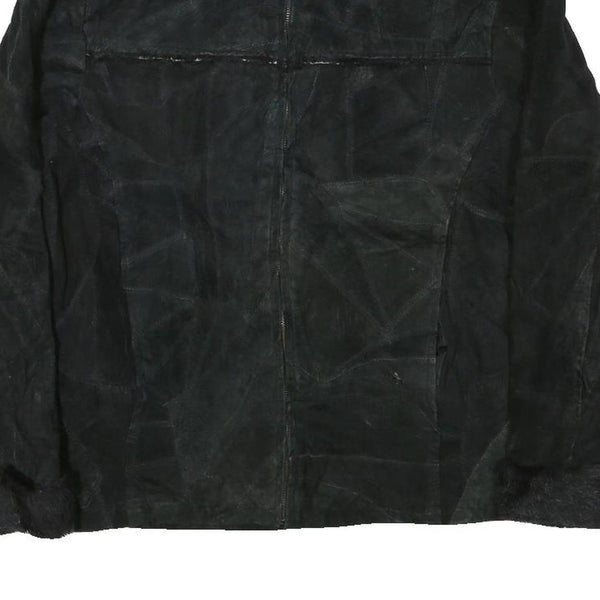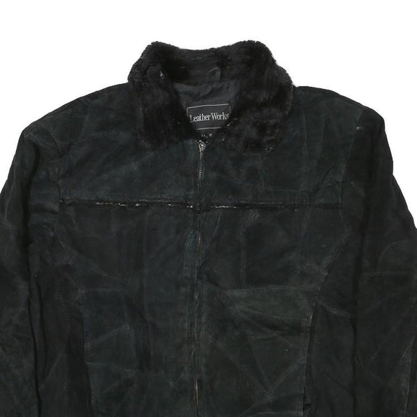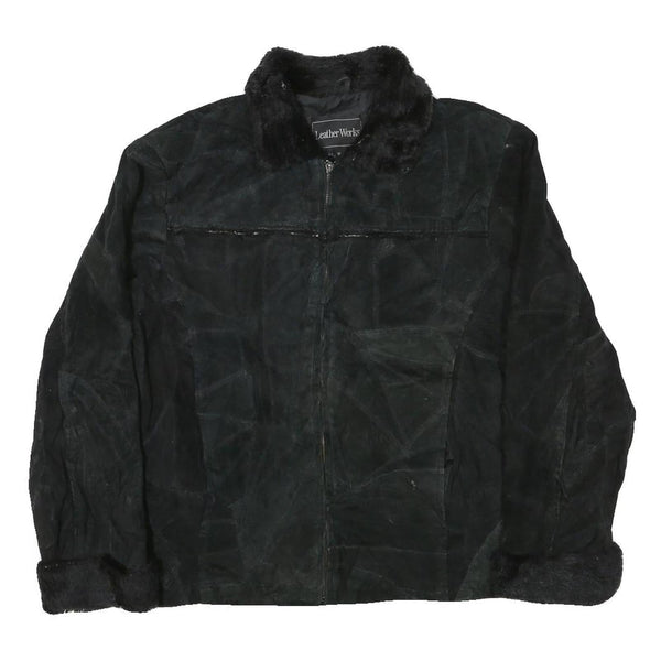 LEATHER WORKS Womens Black Leather Jacket XL Suede Zip Retro Classic Outerwear
