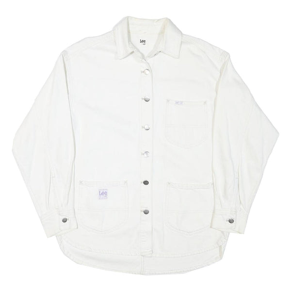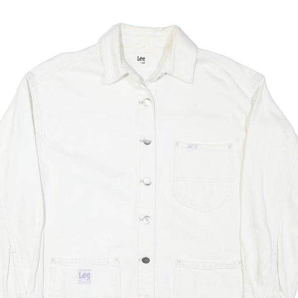Lee womens white cotton blend button jacket m plain casual classic workwear