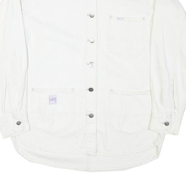 LEE Womens White Cotton Blend Button Jacket M Plain Casual Classic Workwear