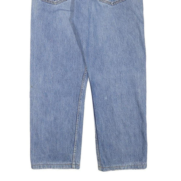Crafted from a durable cotton blend, these jeans offer a sturdy yet comfortable feel. The regular fit ensures a traditional, flattering fit through the waist and thigh, finished with a button fly closure for an authentic Levi's look. Notable signs of use include some minor stains and wear, consistent with fair pre-loved condition.