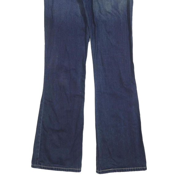 Designed with a slim fit through the hips and thighs, these jeans flair out slightly from the knees down, giving a sleek and flattering silhouette. They have a mid to low rise and use a zip closure with a button at the waistband. Two front and two back pockets provide practical storage while complementing the traditional denim look.