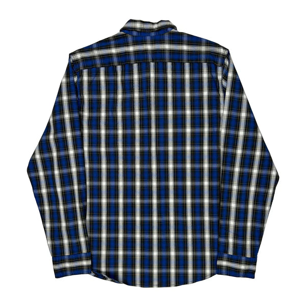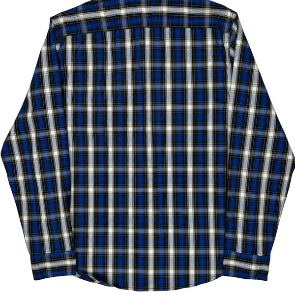 Blue And White Checked Flannel Shirt With Stretch Fabric