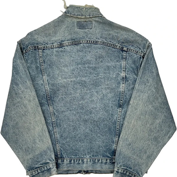Light Wash Denim Jacket With Some Fraying On The Collar