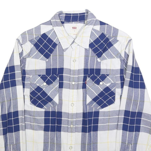 LEVI'S Mens Blue White Check Shirt M Cotton Blend Casual Long Sleeve Buttons