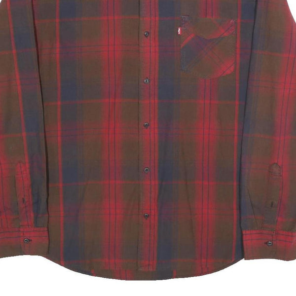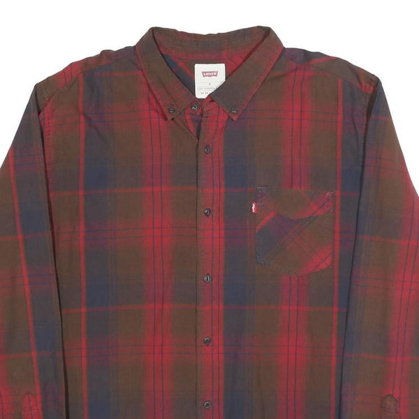 LEVI'S Mens Red Brown Check Shirt XL Button-Down Collar Cotton Casual