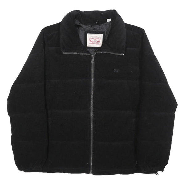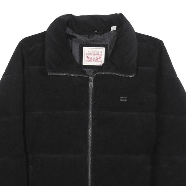 LEVI'S Womens Black Cotton Blend Puffer Jacket XL Corduroy Zip Casual Outerwear