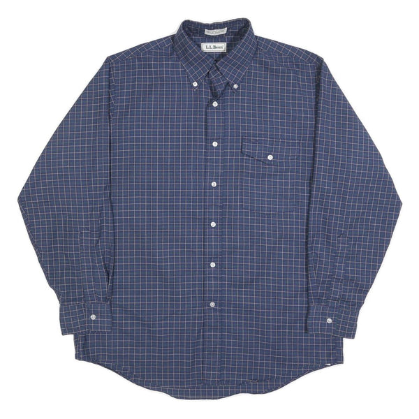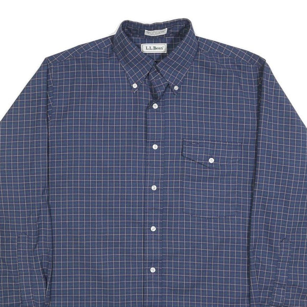 LL BEAN Mens Blue Check Shirt L Button-Down Collar Long Sleeve Casual Cotton