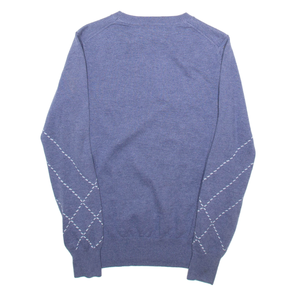 LYLE & SCOTT Womens Patterned Jumper Blue Argyle Tight Knit S
