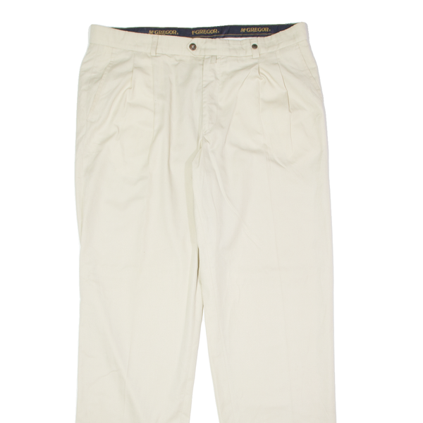 MCGREGOR Pleated Chino Mens Trousers Cream Regular Wide-Leg W39 L34