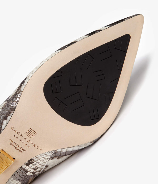 Each x Every one of our occasionwear shoes comes with two coordinating removable straps. Loop one, or stack both, through the branded metal halo on the sole, for personalized support, impact, and style