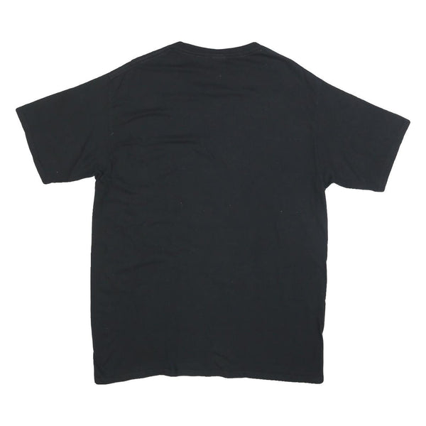 Mens Black Army Printed Cotton Blend T-Shirt L Short Sleeve Crew Neck Plain
