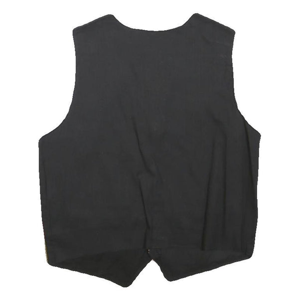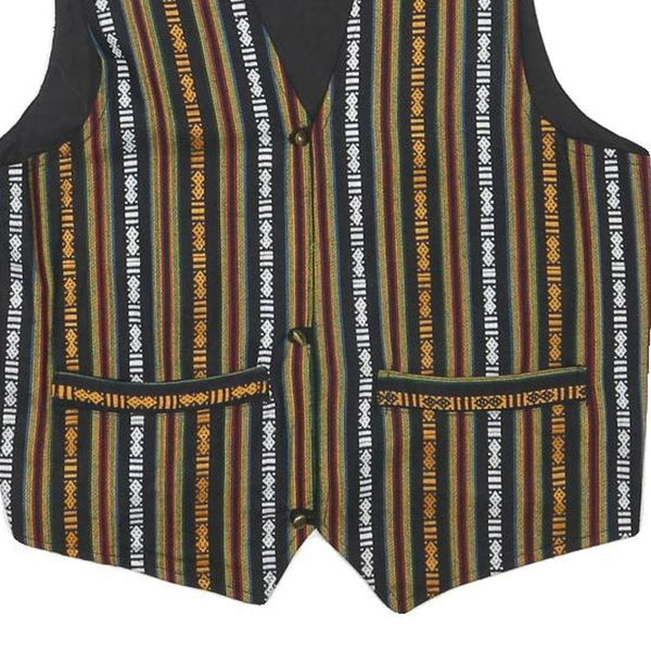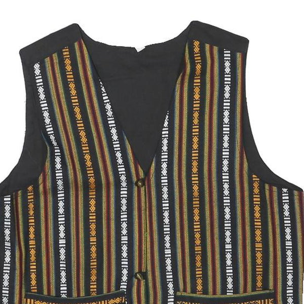 Mens Black & Multi Stripe Cotton Blend Woven Sleeveless Button Jacket S Regular
