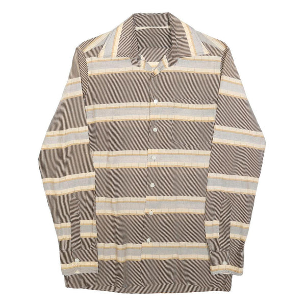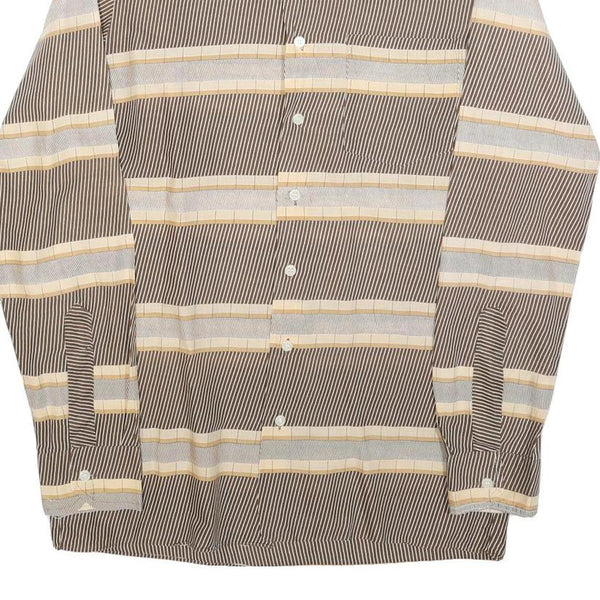 Mens Brown & Cream Striped Cotton Blend Shirt M Long Sleeve Button Closure