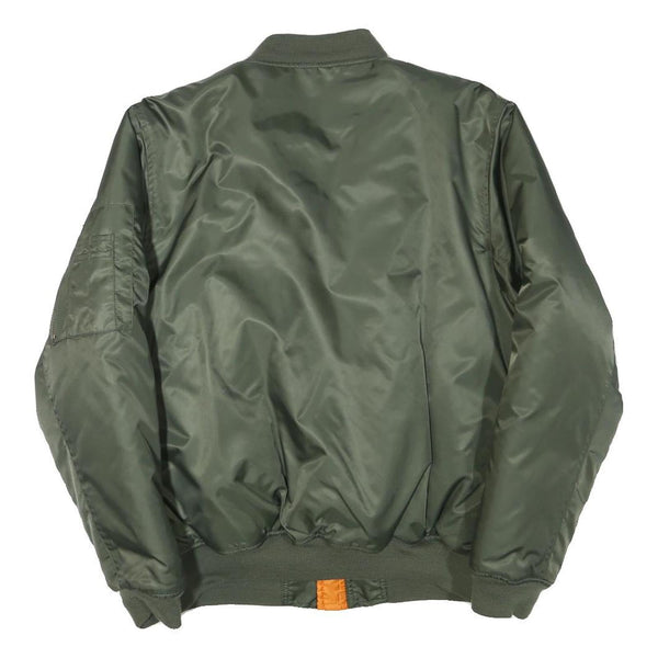 Mens Green Bomber Jacket S Polyester Blend Plain Lightweight Zip Fastening