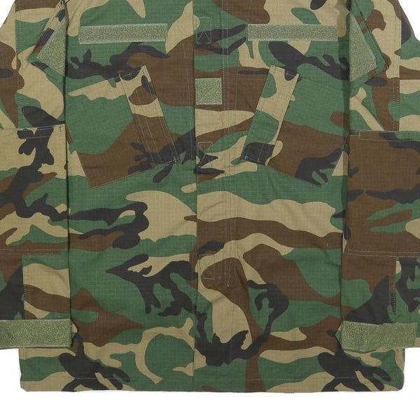 Mens Green & Brown Camouflage Zip Jacket L Cotton Blend Military Style Outdoor