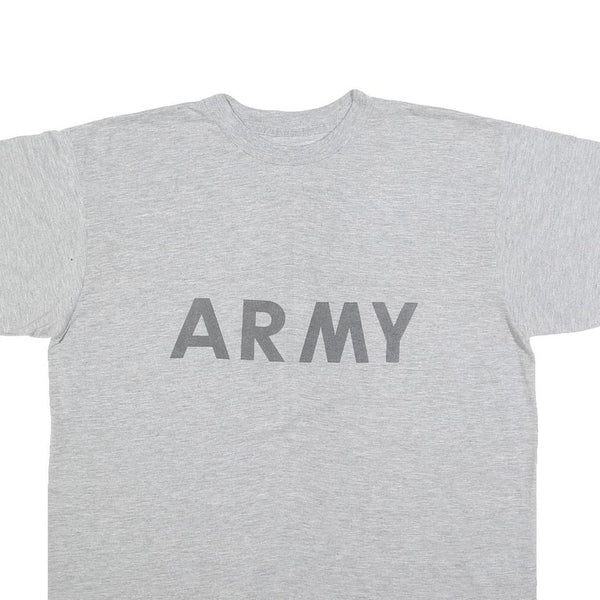 Mens Grey Cotton Blend Plain XL Short Sleeve Crew Neck Army Print T-Shirt