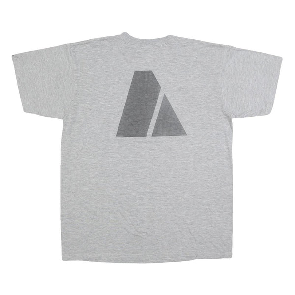 This men's T-shirt features a solid grey colour crafted from a cotton blend fabric that offers a soft and breathable feel. The front displays a simple, bold "ARMY" print in a slightly darker shade of grey, while the back showcases a large geometric print composed of two shapes.