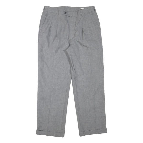 Mens Grey Wool Blend Regular Fit Straight Trousers W32 L28 Classic Formal