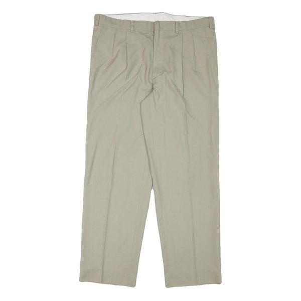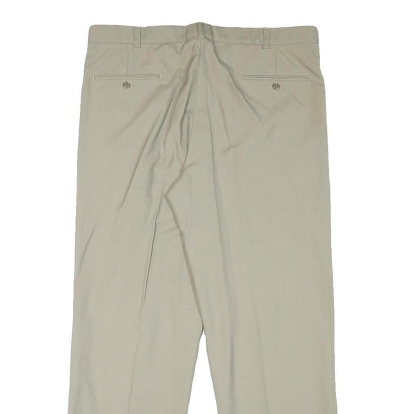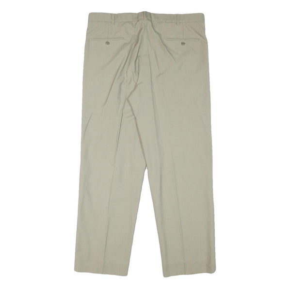 Mens Regular Fit Beige Cotton Blend Trousers W36 L30 Zip Closure Straight Leg